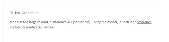 If you have a budget to experiment with, you can try launching the model on a dedicated service. However this will also require your patience; the most natural service to do this is HuggingFace’s inference endpoints service. Which I haven’t gotten it to work, despite the suggestion I should be able to launch a model in a few clicks.
